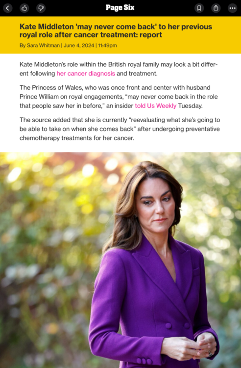 the “soap opera” is a very small part of the interest. the bigger story is the entire British media being complicit w the Monarchy in suppressing the real story, whatever that may be. And, of course it exposes the hypocrisy & racism of the Royal Family as it demands privacy for Middleton and the press goes along while at the same time, offering up Meghan Markle for public consumption with no pushback. The racism is significant as King traditionally heads the Commonwealth of Nations - former British Colonies, mostly populated by people of color. It all begins to look ridiculous in context of their own personal situations & behavior. It stirs debate in those countries about true independence and severing relations with the Crown, like now happening in Jamaica & Nigeria. The Royals have a long & established history of disposing of people who no longer serve their interests or somehow threaten the Monarchy. Obviously, Middleton has delivered the heir & spare - and now she is no longer necessary. Not the first time. its the unraveling of a centuries old global institution- with almost no questions being asked by the press, for whatever reason. Thats what is interesting.