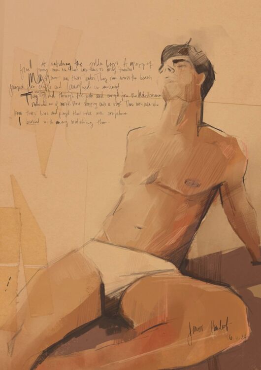 Jace travels to Sicily to improve his Italian where he finds himself obsessed with a group of guys at the beach dubbed “The Golden Boys”, a seemingly perfect group of boisterous boys that spend all day jumping off cliffs and arrogantly strutting around. Their leader, Massimo, has the body, and bulge, of a mythological god. Happy in the shadows, Jace idyles away writing and sketching in his journals. That is, until one day a fateful accident turns his summer upside down. This is a story of sex, love, and heartbreak along the breathtaking shores of Sicily with captivating erotic illustrations drawn by the author.