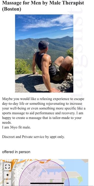 Found this guy on Craigslist. Says his name is Nate. I’ve texted with the person back and forth regarding pricing (60-min $120, 90-minute $160) and availability.