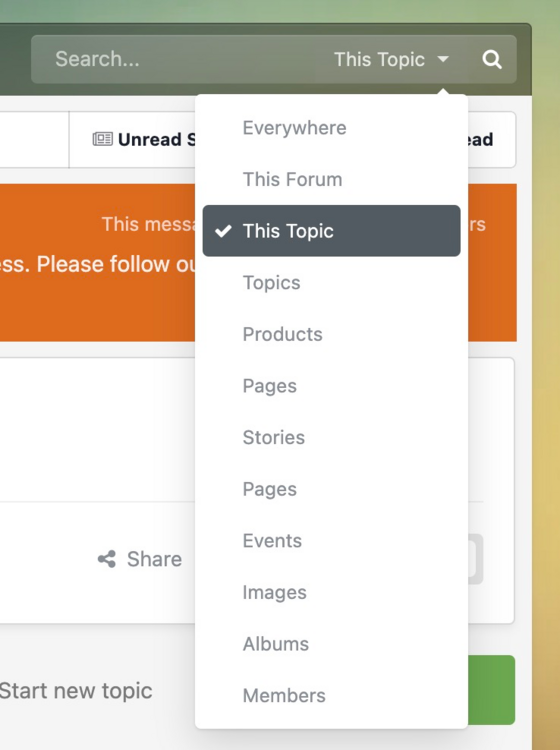 24. The site search is “location aware”. Meaning it will try to search within the specific area you are in. If you are viewing a topic, the default is to search that topic. Or if in a forum… to search inside of only that forum. Make sure you change the context to “everywhere” if you want to search the full site. You’ll find the context directly to the right of the box to enter your search term.