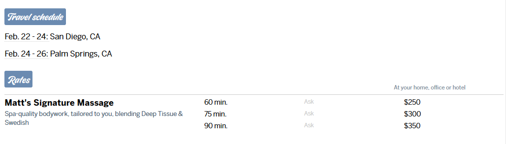The massage itself was really bad. It was done on a hotel bed, with my feet literally hanging off the edge. He spent an excessive amount of time on my feet, and I mean excessive. It honestly felt like he might have a foot fetish because he barely worked on my legs or back, did almost nothing on my arms, and the actual massage technique was weak overall.