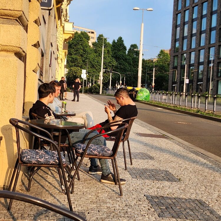 Has anyone tried Dresden yet? It's only 1 hour by train, 50 miles, from Prague and a huge historic city with a lot of Hunqz listings. Hotels there are cheap and it's great for site seeing and only a few $ from Prague station. Seems to be a number of latin bodybuilders there. I may try for a day. Also, most BelAmi guys are from 150 miles south of Prague. Olomouc, Ostava, and Brno plus Bratislava and Slovakia across the border from southern Czech. Fewer of them are willing to come all the way up to Prague. That's where Deni (Czech Hunter} and other agents found these guys driving around and word of mouth. I'm still friends with several, Peter Lipnik, Dom Ully, Thom Jacobs, Tom Novolty, and young pro bodybuilder Mikk Arden. But none of them come to Prague anymore. Brno is a beautiful 1 hour train from Vienna, as is Bratislava and Vienna has the usually packed aggressive hustler bar Alte Lampe full of Arab escorts. DanielPRG finally answered that he's in hospital so one of the last ones M.I.A. Ray Cutler is at his parents in Brno. I have my regulars but was hoping to test some new ones. (not that Ray is "new"). I can't give out any contact info. It's frankly amazing how these guys have ads available to millions with comments on fisting and everything else and 100 online porn scenes but they freak out at being mentioned on a small limited membership site of clients. On my 6th visit to Up on a sunny sunday i finally saw 5 guys there to make up for the 5 zero days. Unfortunately betweeen the 5 of them they had enough teeth for a full set for 3. One , a blond, could have been attractive otherwise. These uppers are terrible drugs. It seems Up has a regular contingent of homeless guys and the owner seems to bring many or meet them there to take home. I felt sorry for the blond and gave him 200 koruna and noticed later he brought in some sodas and food he had bought at Lidl across the street. Today i went back about 17:00 and there were several new ones sitting in the outdoor tables. Last summer the outdoor area drew guys when hot as they have a misting cooler. Pic a couple hours ago:
