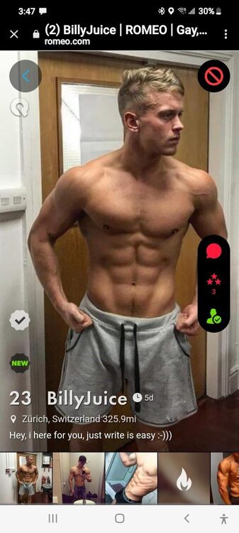 This is a brand new ad in Zurich of someone no one's seen with only 2 "reviews" . A friend was positive it was my close friend "Roald Ekberg" working Zurich but, no. The agent in Zurich often has fake ads up but always with the same pics of real guys he's represented and this guy's English is awful. I have a suspicion he may be a model whom someone is using pics of, but what a great thing if he is really new in the business. Anyone know him.? I'm in Barcelona and Prague in March and can make a side trip wherever he is. I've gone further for less.! https://www.romeo.com/hunq/BillyJuice