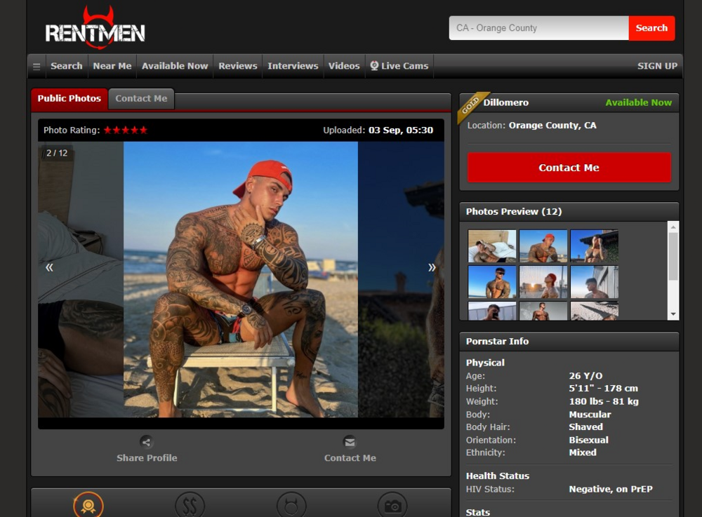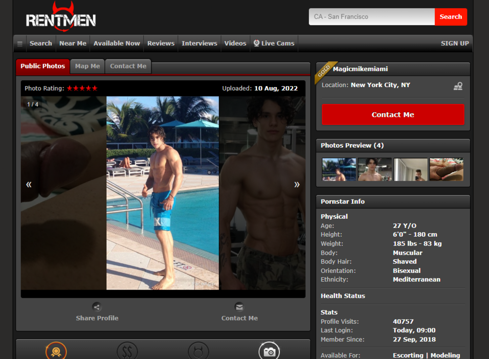 https://rentmen.eu/JJOSEPP AKA Quintastar, LuisElfar, EricPalo, EricXXX, JavierCaporejo, etc.. Guy is in Europe not CA