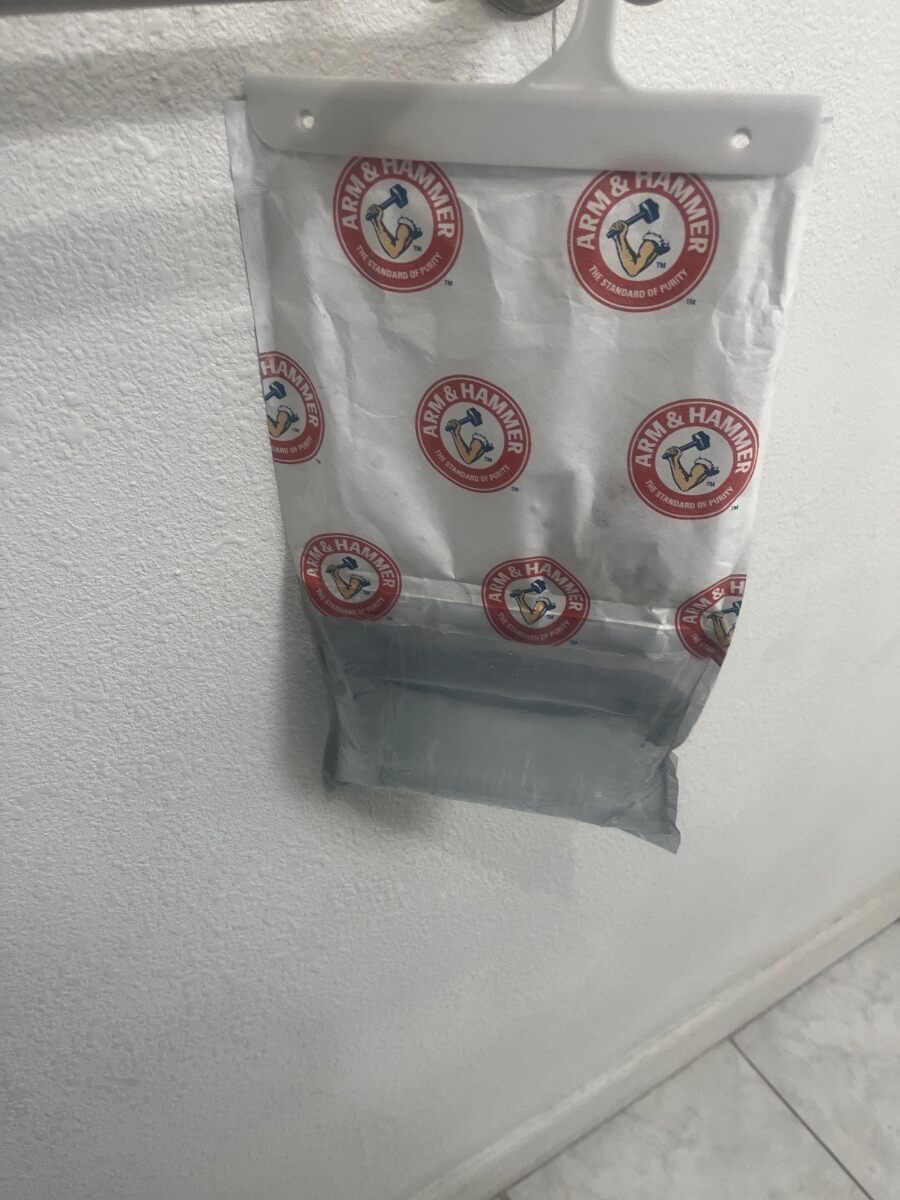 It's hanging up on a towel rod in a bathroom. It looks like it's filled with water. Thanking in advance for any information.