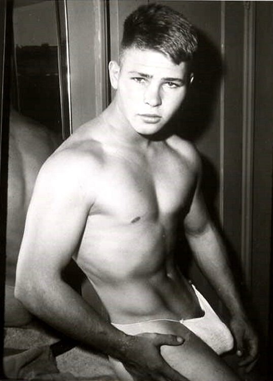 One of my AMG favorites is John Davidson. I had not seen this picture of him before. You may remember he was the 18 year old who Bob Mizer photographed before leaving for Vietnam in 1965, but the poor lad died of encephalitis en route.