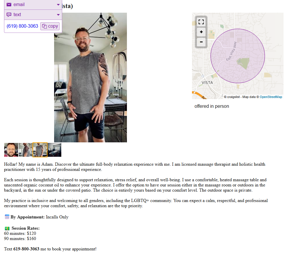 + 7829V Posted Sunday at 07:20 PM Posted Sunday at 07:20 PM https://sandiego.craigslist.org/nsd/hws/d/vista-massage-therapy/7927679534.html